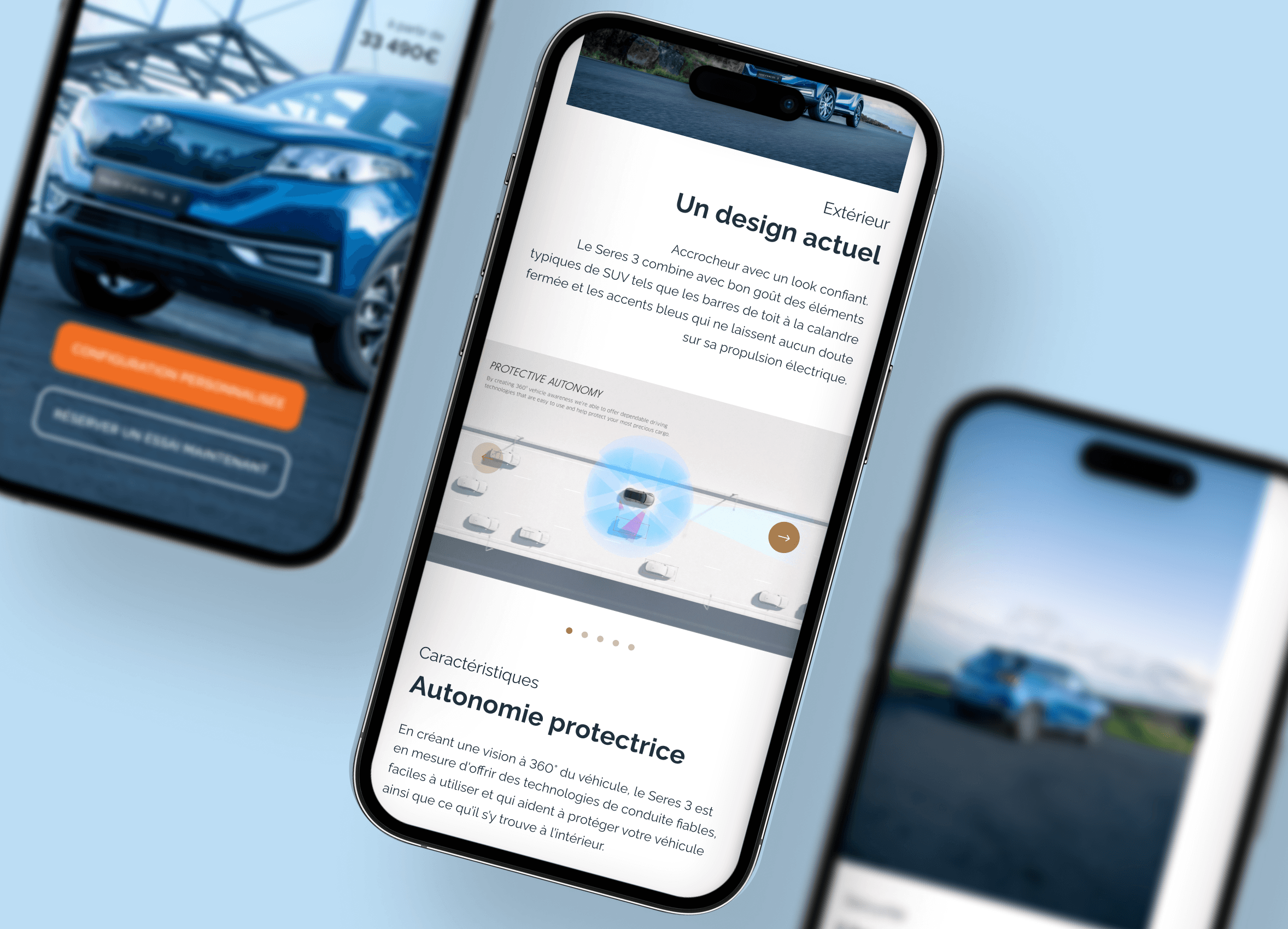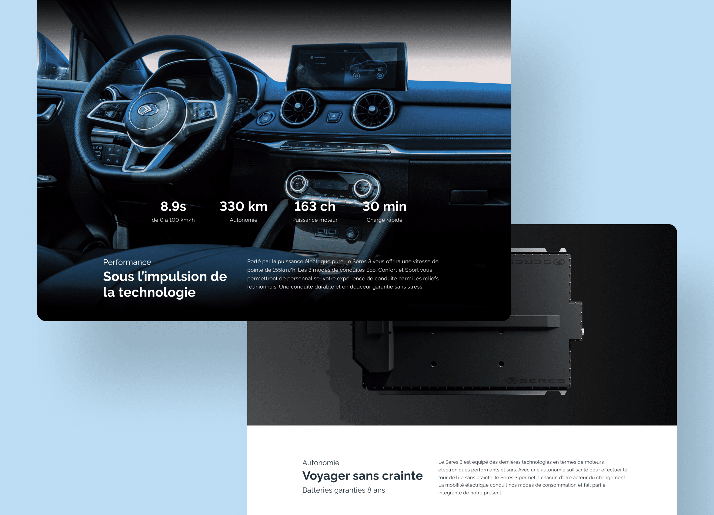 Asseoir la notoriété de la marque : concevoir une identité numérique forte pour soutenir l'entrée de Seres sur le marché automobile réunionnais et instaurer un climat de confiance immédiat.