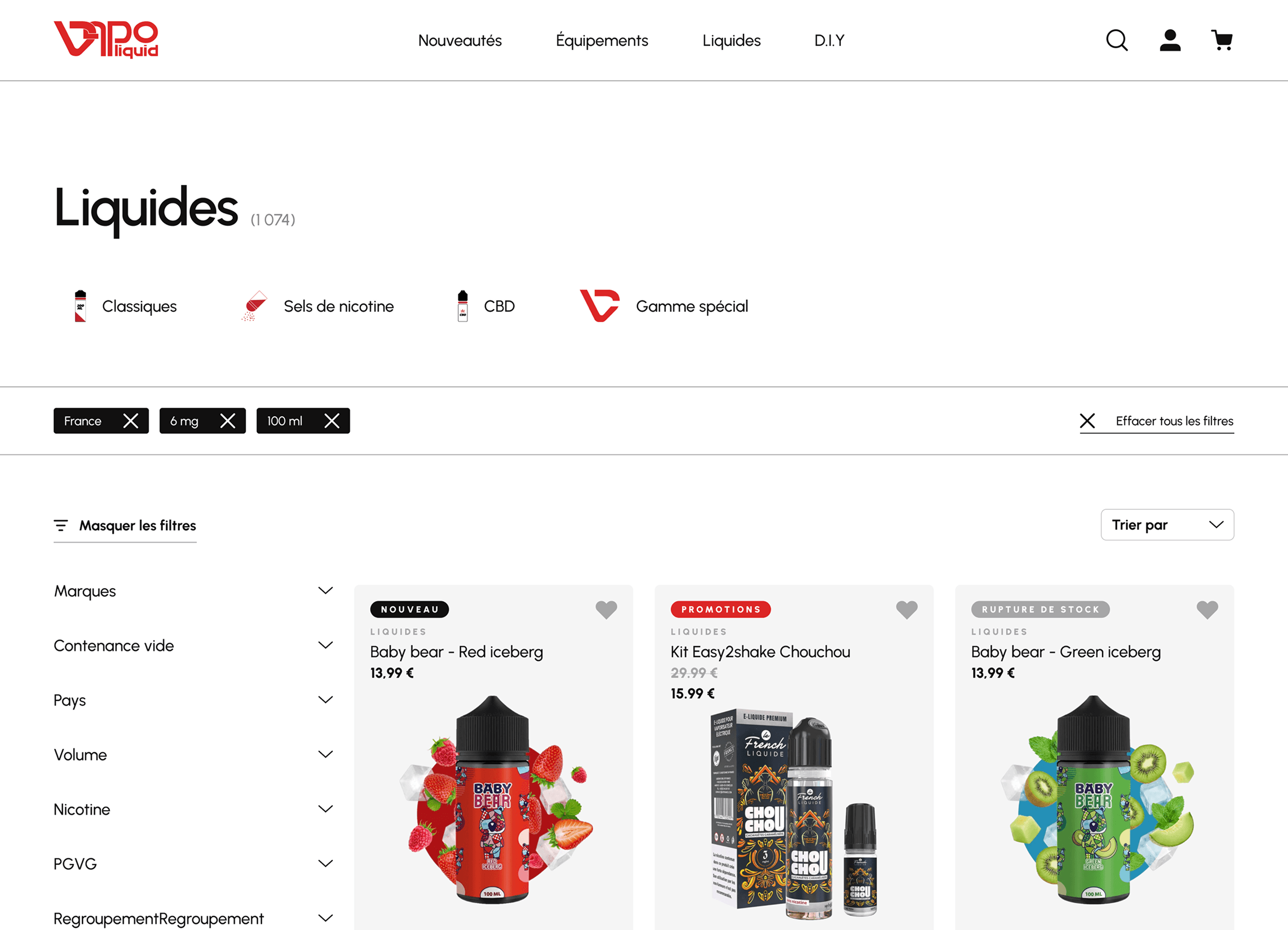 Refonte du site e-commerce de Vapoliquid, un spécialiste en produits pour les vapoteurs.